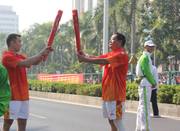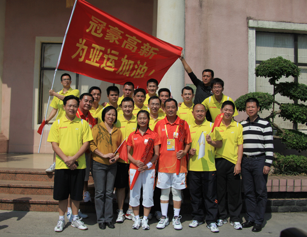 2010年11月1日,美丽的海滨城市湛江,万众瞩目,全民欢腾,第16届亚运会圣火开始了湛江站的传递,点燃了湛江市民的亚运激情。圣火传递不仅为湛江市民增添了无限的欢乐与精彩,更让每一位冠豪人热血沸腾——公司副董事长、总经理黄阳旭先生作为湛江火炬手,参加了此次火炬传递活动,这是黄阳旭总经理继当选全国劳动模范、全国人大代表之后又一殊荣,不仅是黄阳旭总经理个人的光荣,也是冠豪高新的荣耀。