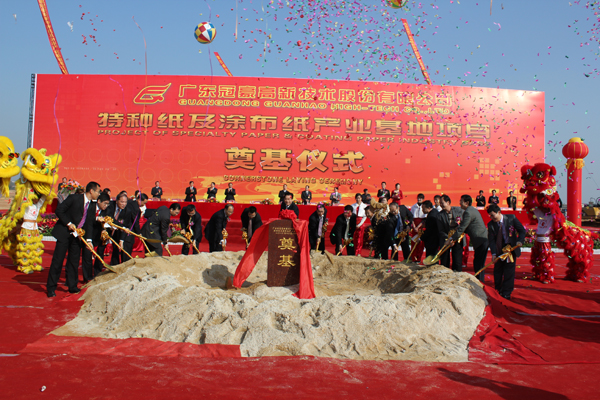 最后,湛江市市长阮日生宣布冠豪高新特种纸及涂布纸产业基地正式奠基,现场军乐奏响,醒狮劲舞、礼炮齐发,将奠基仪式推上了高潮。