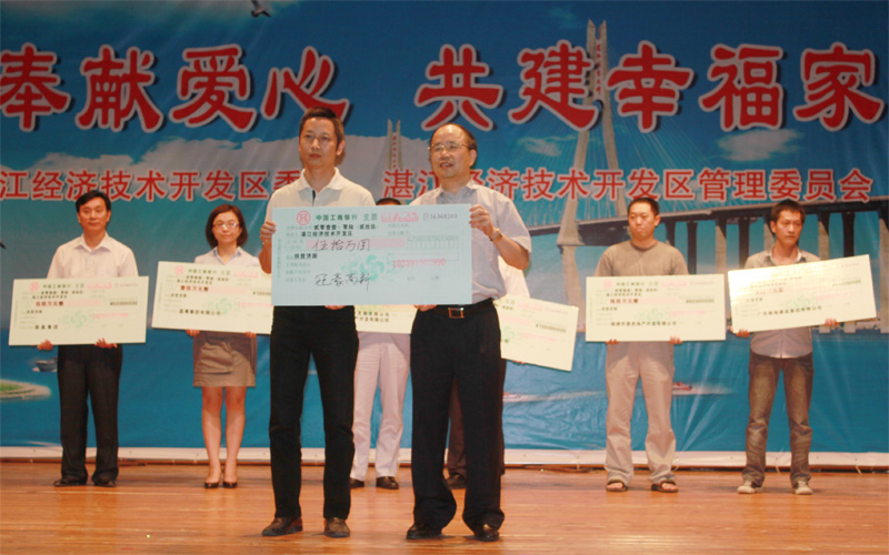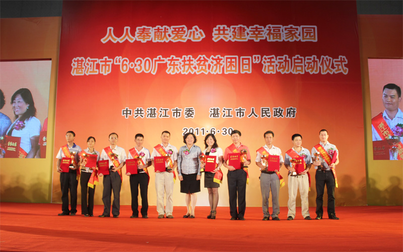 只要人人都献出一点爱,世界将变成美好的人间。2011年6月30日,是第二届“广东扶贫济困日”。30日上午,湛江市和湛江经济技术开发区“6•30广东扶贫济困日”活动总结表彰暨捐款动员大会分别在市体育中心和开发区泰华大厦隆重举行,大会对2010年“广东扶贫济困日”捐款活动进行了总结,对在捐款活动中表现突出的单位和个人进行表彰,并举行第二届“广东扶贫济困日”的捐款仪式。