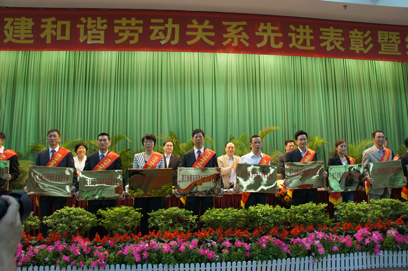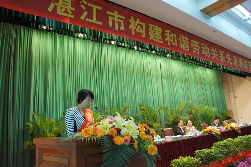 大会由市委副书记麦教猛主持,湛江市委书记刘小华,和谐企业领导小组成员、市总工会、劳资关系三方领导及模范代表等共300多人参加了会议。冠豪高新副总经理靳建荣出席会议,代表公司上台领奖,并代表获奖企业上台宣读了《构建和谐劳动关系倡议书》,向广大企业和企业家发出五个方面的倡议:遵守法律法规,保障职工合法权益;建立工资正常增长机制,让职工共享企业发展成果;强化民主管理,发挥职工主人翁作用;加强人文关怀,促使职工全面发展;热心公益事业,积极履行社会责任。靳总的发言生动务实,引起与会人员的共鸣,赢了阵阵热烈的掌声,充分展示了冠豪高新的企业风采。