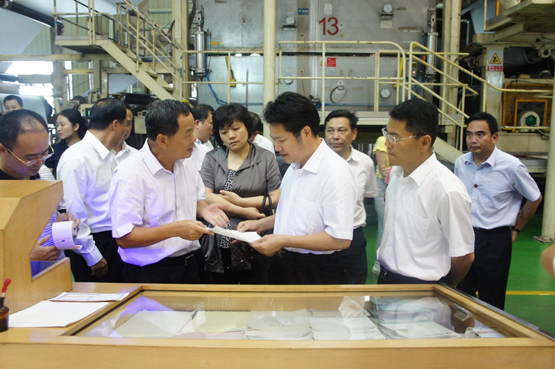 在黄总的陪同下,刘副省长一行参观了公司的三号涂布生产线,黄总详细讲解了公司无碳复写纸产品的技术特点和应用范围,在样品柜前,领导们饶有兴趣地驻足观看。当听到黄总介绍冠豪公司由国家税务总局、中国印钞造币总公司选定为增值税专用发票专用无碳复写纸唯一供应商,拥有世界上最先进的无碳复写纸防伪技术时,刘副省长高兴地表示赞赏和肯定,并鼓励公司继续努力,不断提升竞争力。随后,刘副省长一行还查看了三号线的生产设备和成品车间,并不时询问相关情况。考察结束后,临行前刘副省长要求公司再接再厉,做大做强,为地方经济发展做出新贡献。
