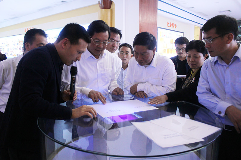 郑人豪书记详细查看特种纸产品展示