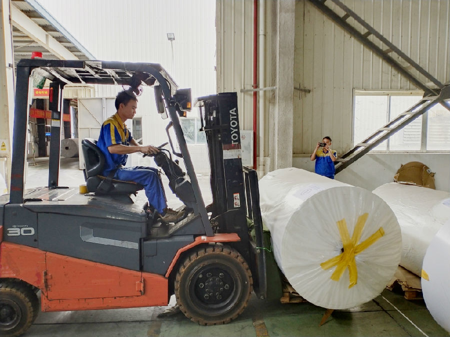 在日常分切生产过程中,用叉车运送纸卷是生产运行中不可少的一环。此次比武主要考察叉车司机对叉车的熟悉和掌握程度,从起步、直线行驶、转弯、叉纸、放纸、停车整个过程。