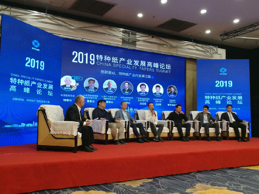 10月16日下午,特种纸展览会举办2019中国特种纸产业发展高峰论坛,由中国造纸学会理事长曹振雷担任论坛主持人,并邀请来自特种纸行业的国内外权威专家、学者和企业家,共同研讨特种纸行业发展、产品开发及工艺技术创新等课题。公司党委书记、总经理钟天崎受邀出席并在“创新驱动、特种纸产业的发展之路”圆桌论坛上就推动产业创新发展和加强人才队伍建设等问题给出了建设性意见。