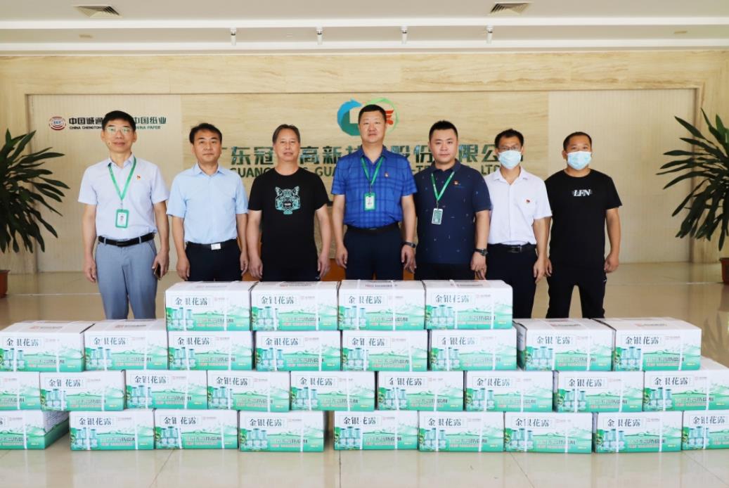 2020年7月,了解到冠豪高新东海厂区将组织开展锅炉超低排放改造项目后,恒诚制药立即决定由张先发副总经理亲自带队到冠豪高新东海厂区向参与项目施工作业人员赠送30箱720瓶新研发的“金银花露”防暑保健饮品,并预祝冠豪高新顺利完成停机大修任务。
