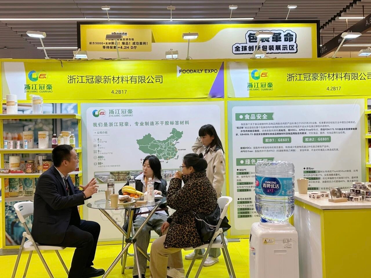 2025年3月30日至4月2日,Foodaily创博会暨每日新潮食品节在上海国家会展中心盛大启幕。浙江冠豪作为“包装创想馆”重点展区参展单位之一,围绕可持续、功能化、安全性三大维度,全面展示绿色标签材料解决方案,吸引众多食品饮料企业、材料专家与媒体关注,展台现场人气持续高涨。